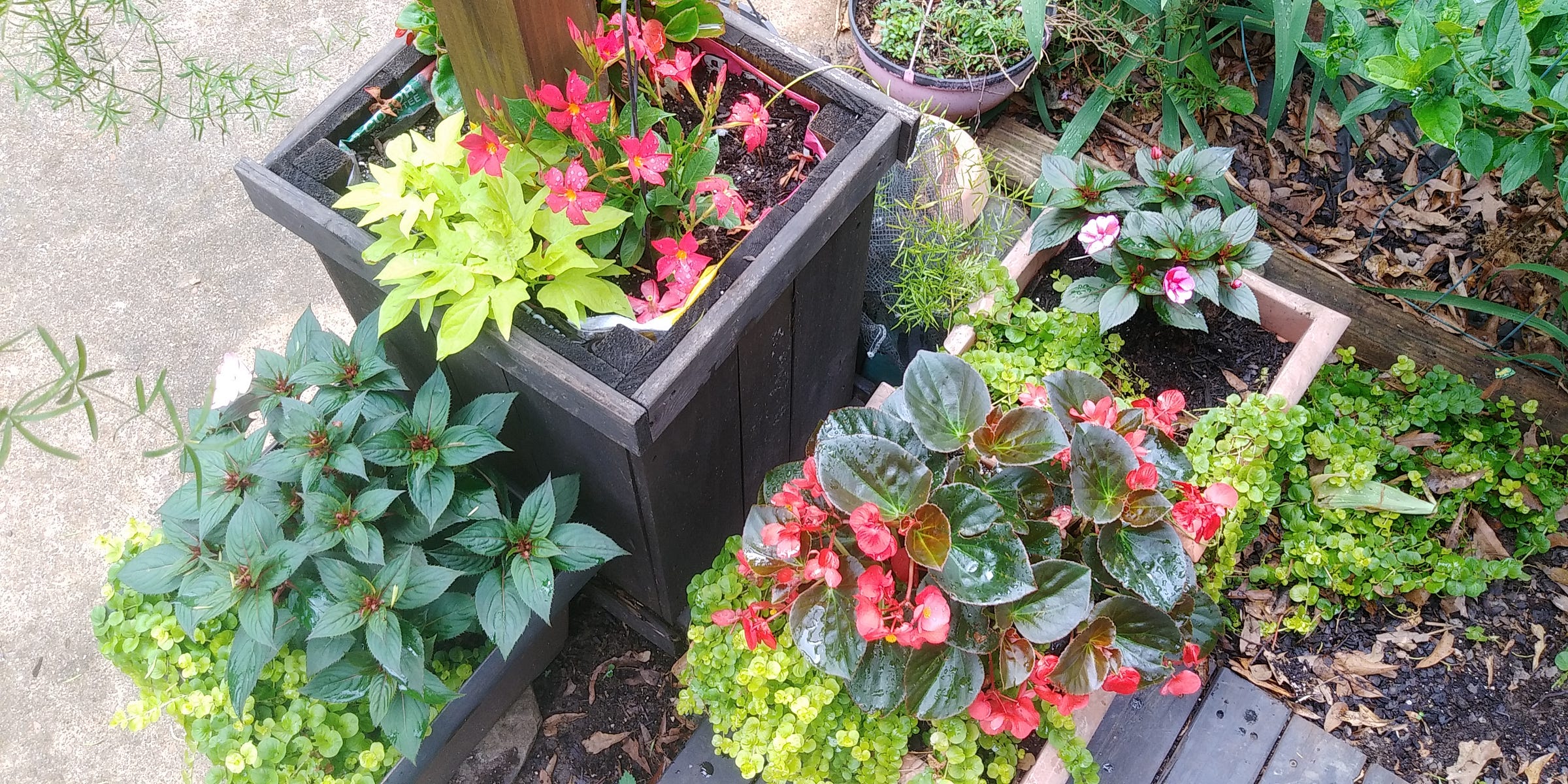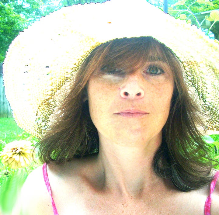 One afternoon about 15 years ago, I sat down in my backyard and started to dream up a new landscape, My backyard was my oasis. Surrounded by old growth Oak, and birch, a few Maples, some red Japanese decorative trees, a few dogwoods, plenty of Southern Magnolias, and a few sycamores, I was looking for some spots that weren't shaded. "COLOR", spoke the artist in me, where could I plant butterfly trees, gardenia, Sun-worshiping Sunflowers, echinacea, and zinnias? Add in some rosemary, Lavender, sage, oregano, and so much more... While I was quietly contemplating my new paradise, that ole hubby of mine snuck up and said howdy, when I opened my eyes he snapped a photo..