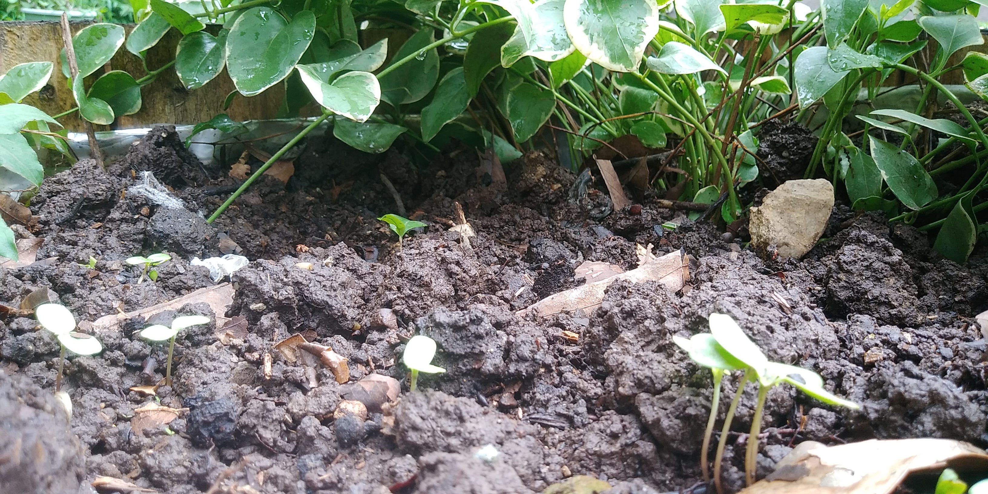 A week ago I prepared the soil, and placed a variety of seeds 6" to 10" deep in the heavy, rich dirt. We've been enjoying several days of Spring rain showers, so today when I went out to check my garden, I noticed some of the Tithonia, Mexican Sunflower seeds sprouting. I started contemplating how a tiny seed, knew that it was time to sprout out of its outer shell, and seek out the light. I was delighted to find the little sprouts.